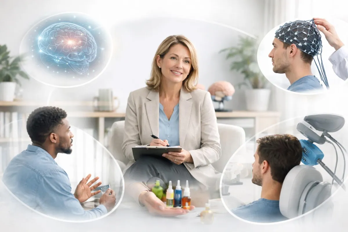 Treatment recommendations may involve psychiatry, therapy, neuromodulation, integrative approaches, or a combination always guided by safety and evidence.